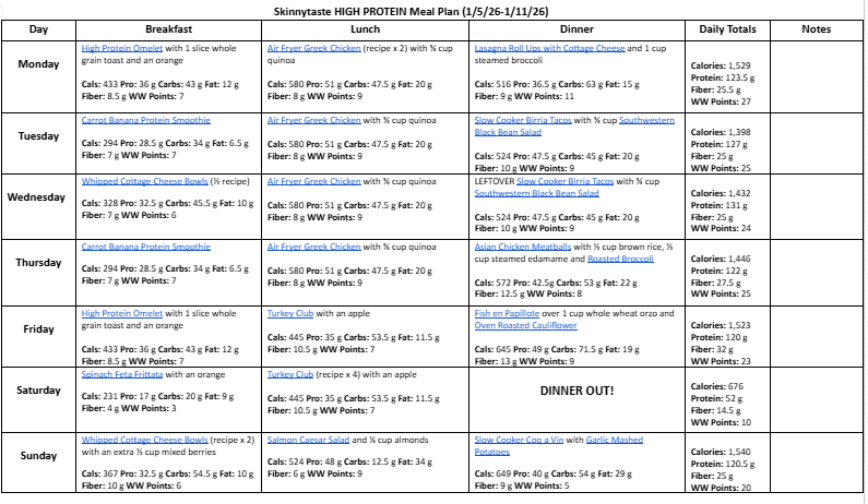 I hope everyone had a great holiday! I thought we would kick off 2026 with some High-Protein, High-Fiber Meal plans that include at least 120g of protein and 25g of fiber daily to help you meet your goals!